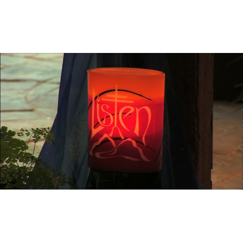 This is a 6″ hand carved lantern “Listen”.