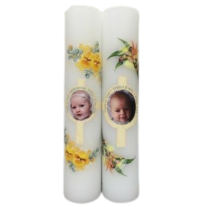The candle will have your child’s name, date of baptism and photo, with an option of general flowers or natives as the decoration.