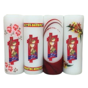 Eucharistic design with red color theme.